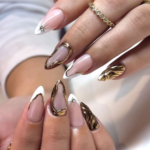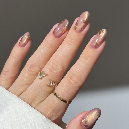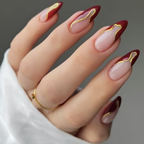 This season, it’s all about glam meets tradition. Think chrome golds, deep maroons, shimmer tips, and festive French manicures