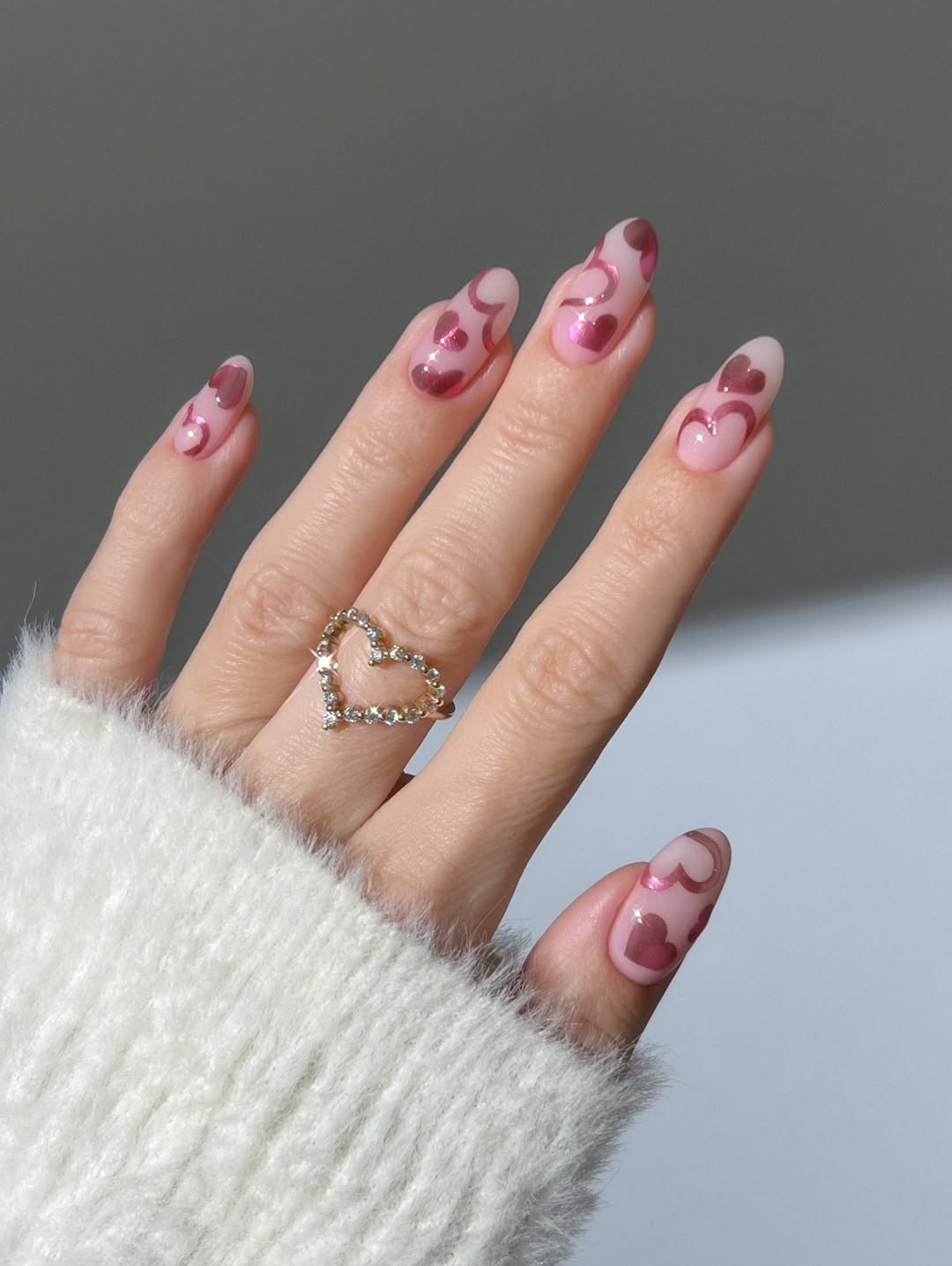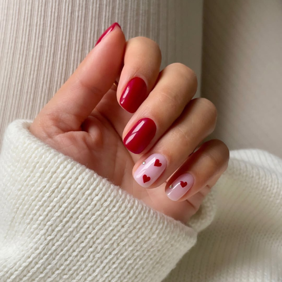 Soft blush pinks & milky nude  | Classic reds with a modern twist | Minimal heart details & micro nail art | Glossy gel finishes & elegant almond shapes | Statement nails for the bold lovers